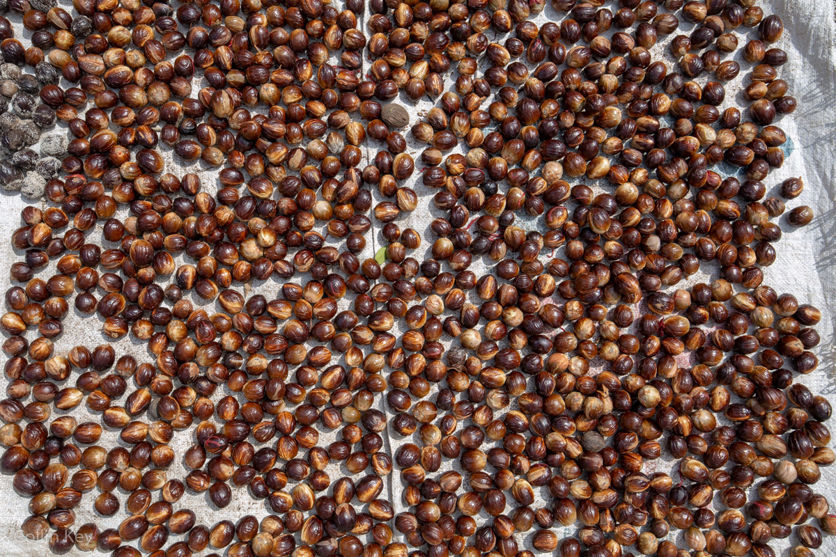 Die eigentliche Muskatnuss, wie wir sie kennen, verbirgt sich innerhalb der schwarzen Kapsel.